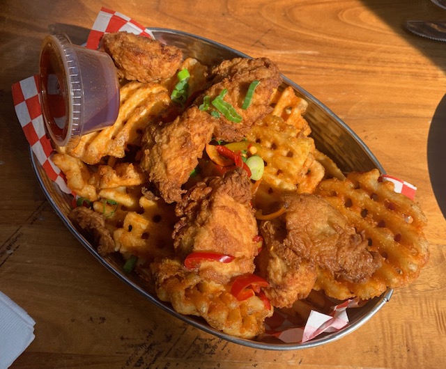 When you’ve had your fill of deep dish, head to Piece in for some New York-style pizza. They have some amazing pies like pepperoni and white pizza. But my favorite was hands-down the honey butter fried chicken, topped with juicy fried chicken, scallions, buffalo sauce, and blue cheese. They’re also a brewery and have a lot of great beers on tap.