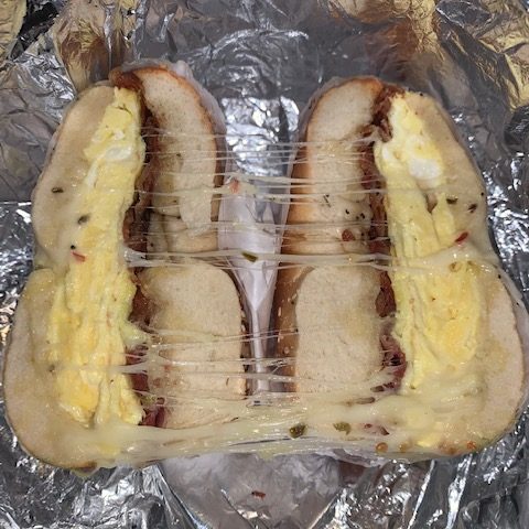 Bagel Boss is becoming somewhat of a small empire: They have three locations in the city, one in New Jersey, and 12 on Long Island (and most of them are kosher). They were out of American and cheddar cheese when I visited (I guess the Sunday of Halloweekend is a popular day for hungover BECs), so I ordered mine with pepper jack. It was surprisingly delicious and also had one of the best cheese pulls I’ve ever had on a BEC. Aside from the typical breakfast orders, they also offer breakfast burritos, omelettes, and signature deli sandwiches.