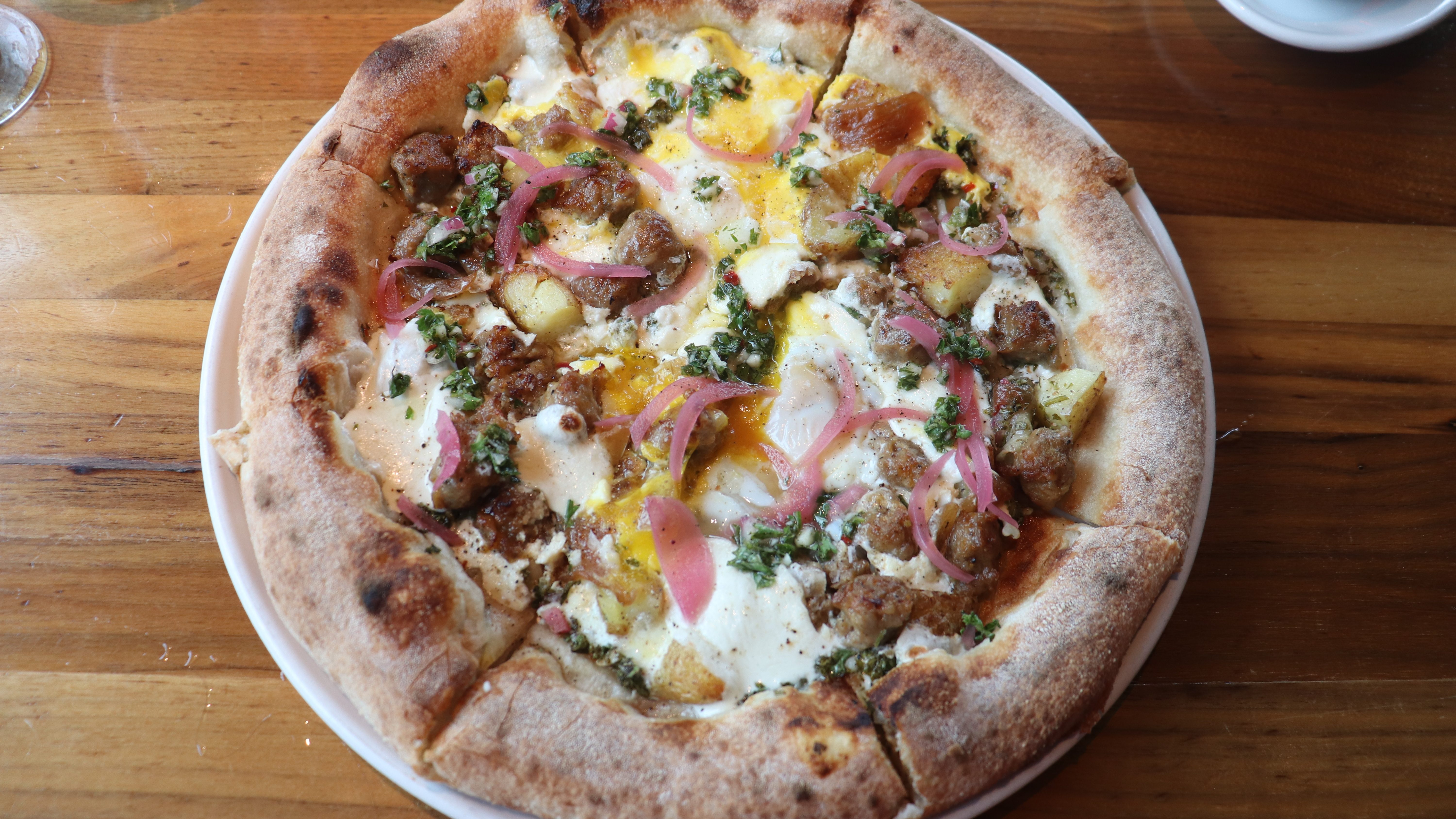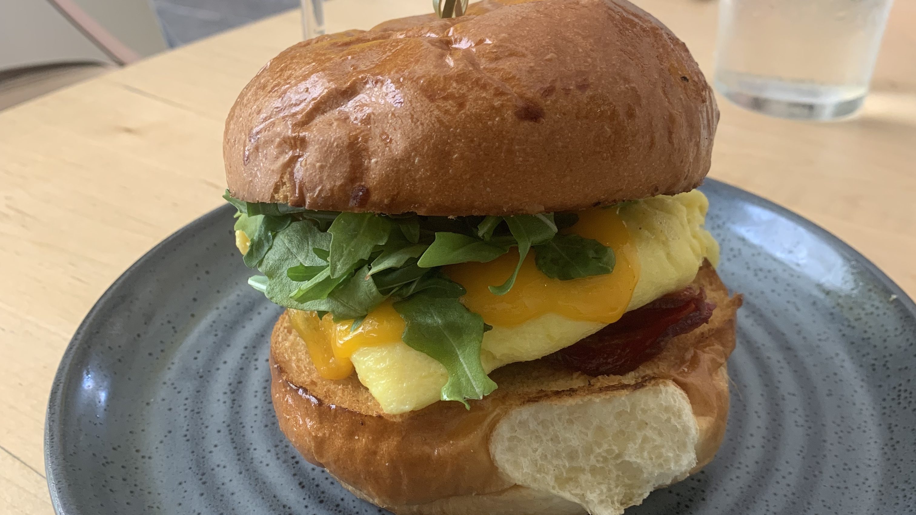 If you’re stopping by Madruga to grab your morning coffee, throw in an egg sandwich to the order as well. Made with an over-easy egg, cheddar cheese, bacon, sautéed greens and an herb aioli served on an onion poppy roll, it’s easily one of the fanciest and most delicious egg sandwiches I’ve ever had.